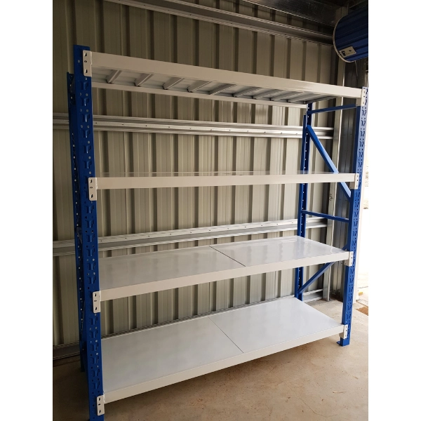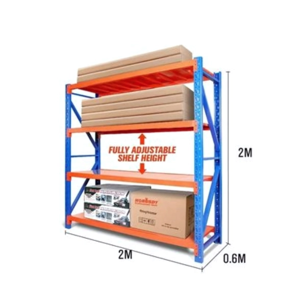 SHELVES 2m x 2m x 0.6m 200kg per shelf Available in: Blue/Orange, Blue/White, Black BLUE/ORANGE BLUE/WHITE BLACK