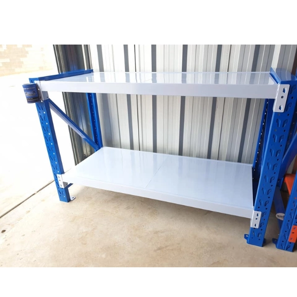 WORK BENCHES 2m x 950mm x 600mm 200kg per shelf Available in: Blue/Orange, Blue/White, Black BLUE/ORANGE BLUE/WHITE BLACK